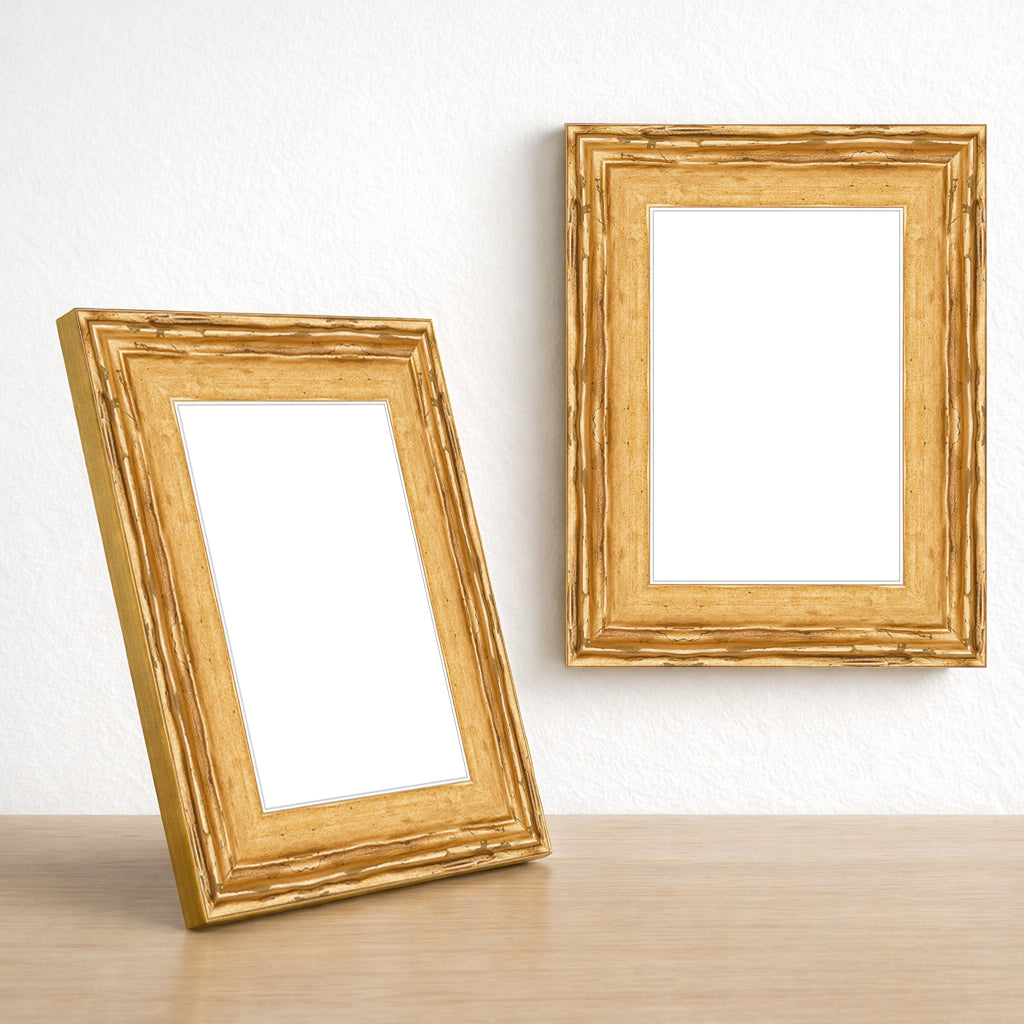Açık Altın Eskitme Ahşap Fotoğraf Çerçevesi – Masaüstü & Duvar Tipi (35 mm)