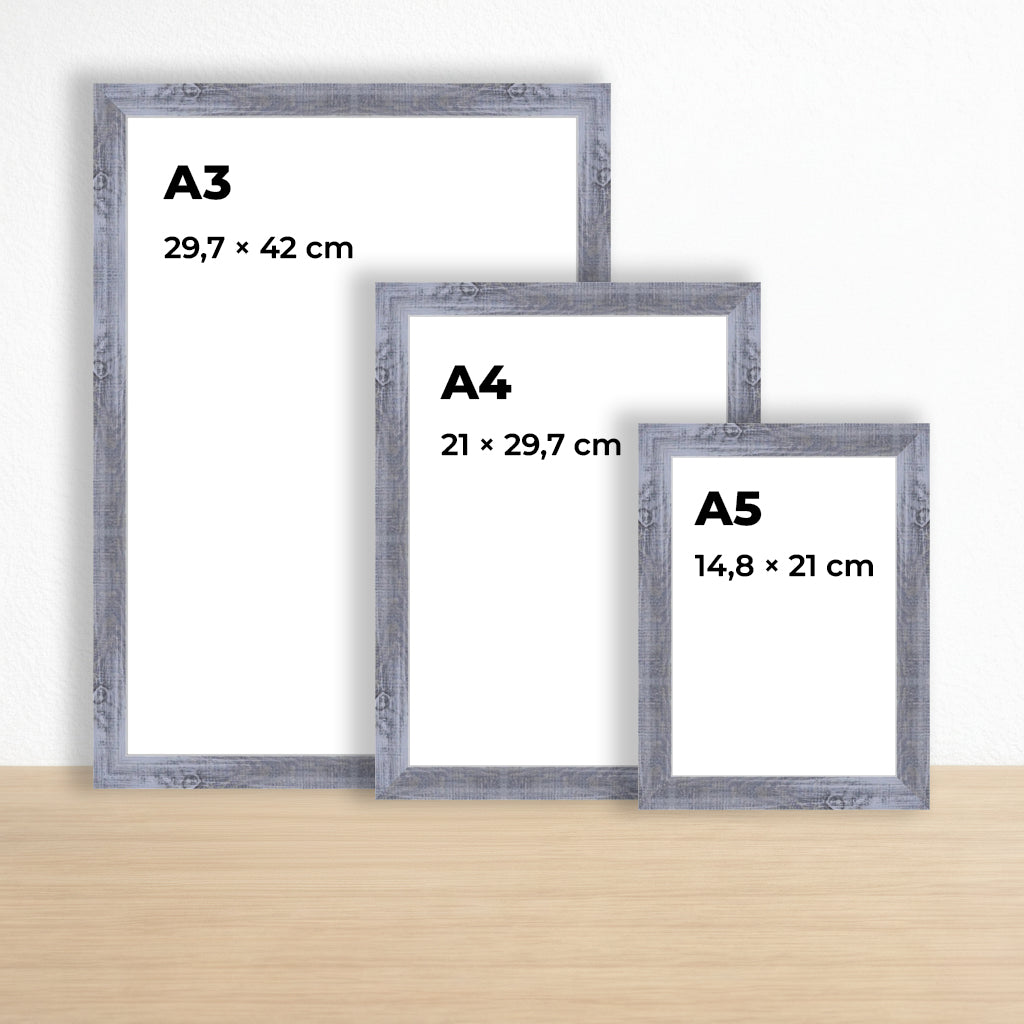 Zamansız gri rengi ve dengeli formuyla öne çıkan bu ahşap çerçeve, belge, sertifika, fotoğraf ve sanat baskıları için net ve güçlü bir sunum sağlar. A3, A4 ve A5 kağıt ölçüleriyle tam uyumludur.